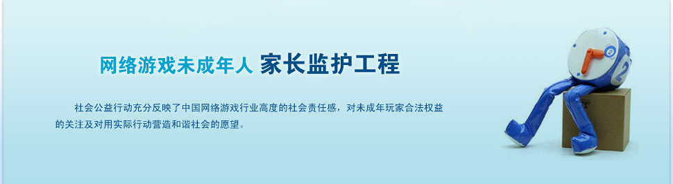 "网络游戏未成年人家长监护工程"是一项由中华人民共和国文化部指导,网络游戏企业共同发起并参与实施,旨在加强家长对未成年人参与网络游戏的监护,引导未成 年人健康、绿色参与网络游戏,和谐家庭关系的社会性公益行动。